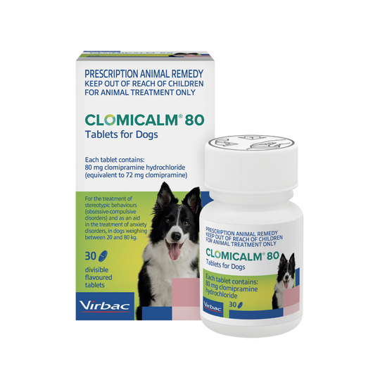 For the treatment of stereotypic behaviours (obsessive-compulsive disorders) and as an aid in the treatment of anxiety disorders, in dogs weighing between 20 and 80 kg.