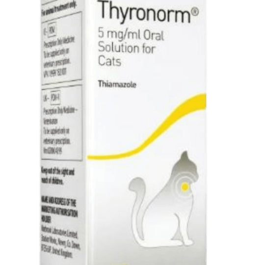 Thyronorm Oral Solution for Cats is indicated for both the stabilisation of hyperthyroidism in cats prior to surgical thyroidectomy and for the long-term treatment of feline hyperthyroidism.